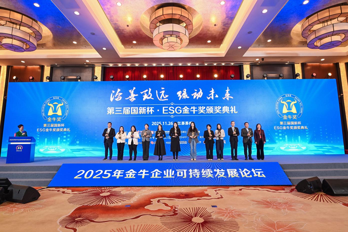 11 月 26 日,由中国证券报和中国国新联合主办的“2025 年金牛企业可持续发展论坛暨第三届国新杯·ESG金牛奖颁奖典礼”在苏州举行,中成股份凭借在可持续发展与ESG 治理方面的卓越表现,再度斩获“ESG治理金牛奖”。连续三年荣获金牛系列奖项,充分彰显了公司在环境、社会及公司治理方面的优秀实践。