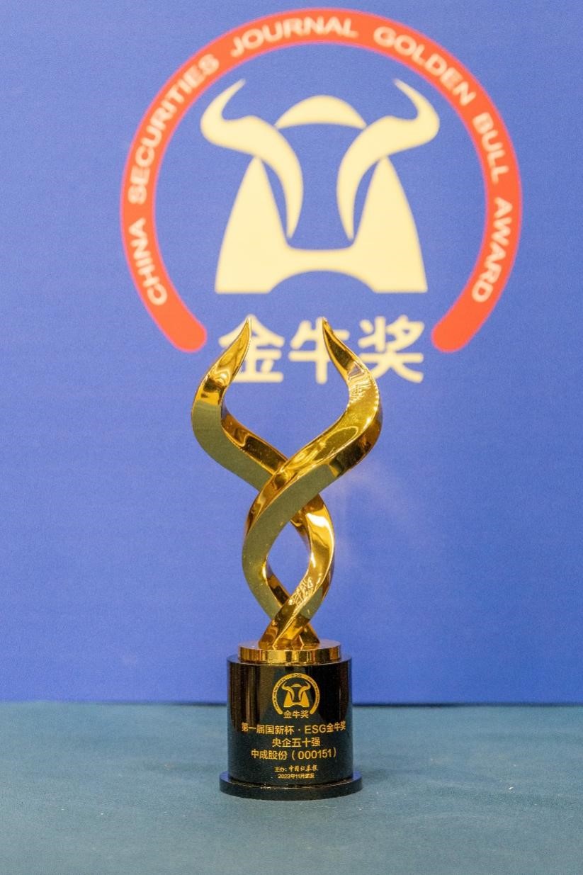 金牛奖是中国证券报鼎力打造的品牌,是中国资本市场最具公信力和影响力的权威奖项之一,具有资本市场“奥斯卡奖”的美誉。本届ESG金牛奖是中国证券报主办的金牛系列评选首次拓展至ESG领域,旨在打造既顺应国际趋势又具有中国特色的权威、专业、公正的中国企业ESG领域权威奖项,用于表彰积极践行ESG理念的代表性企业,鼓励企业绿色经营,帮助企业挖掘内生动力,树立行业内优秀标杆,引领新时代经济社会高质量发展。 “ESG金牛奖央企五十强”作为本次八大奖项之一,选取综合得分排名前50的央企控股上市公司进行表彰。此次中成股份入选“ESG金牛奖央企五十强”榜单,是业界对中成股份积极践行ESG理念的高度认可。